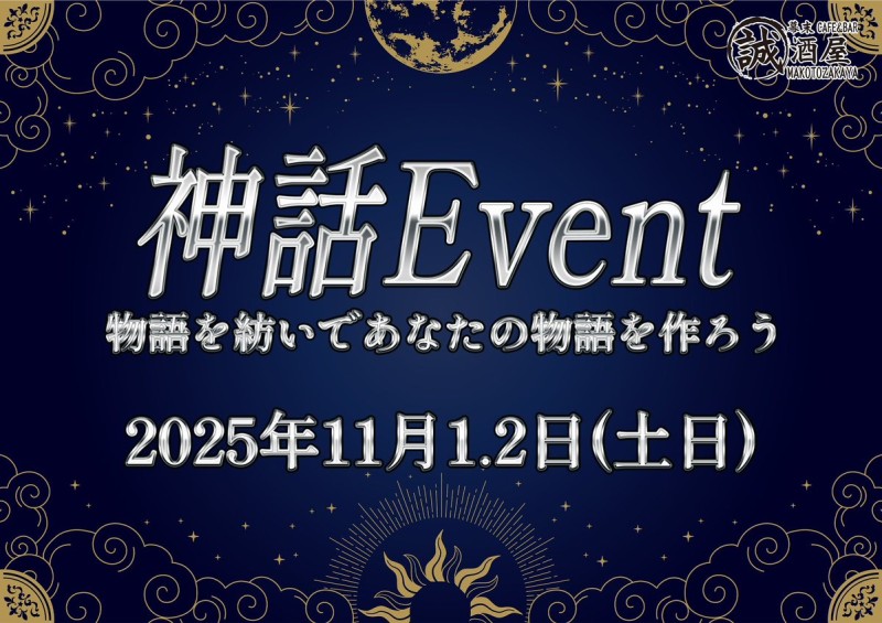 11月2日(日曜日) ・彪世 16-22 ・呂久 16-22 ・辰実 16-22 ・空煌 18-22 神話イベント🪽 隊士達がさまざまな神様の擬人化に✨限定物販を多数ご用意してお待ちしております💫 #秋葉原 #男装カフェ #誠酒屋 #コンカフェ求人 #男装バイト https://t.co/l774mCkpfX
