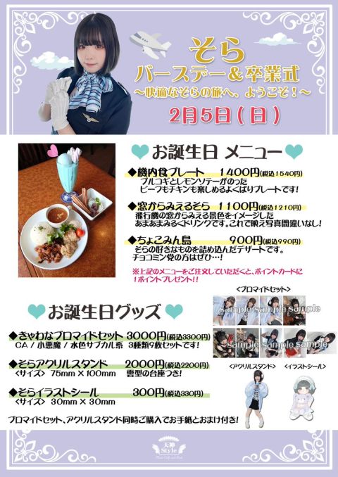 今週末(2/5)の天神Styleは…❣️ ☁️そらバースデー&卒業式☁️ そらちゃん最後のお給仕です! ぜひご帰宅くださいませ! そら☁️@tnst_sora https://t.co/0SlcxS57Bx