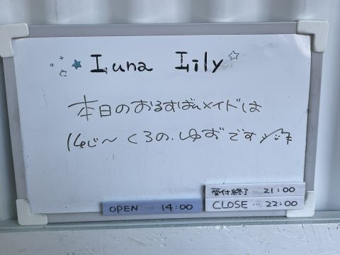 | 営業時間 | 平 日 15:00〜22:00 土日祝 14:00〜22:00 または 13:00~21:00 (21時または20時受付終了) | ||||||||||||||