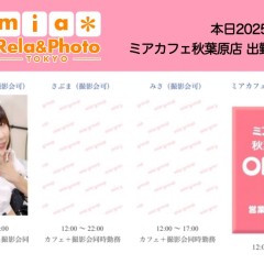 | å¶æ¥æé | âãã¢ã«ãã§æ±äº¬åºïŒã¡ã€ãã«ãã§ïŒhttp://www.mia-cafe.com/ãâ â¡å¹³æ¥ãæïœéãïŒïŒïŒïŒïŒïœïŒïŒïŒïŒïŒ â¡åæã»æ¥æã»ç¥æ¥ãïŒïŒïŒïŒïŒïœïŒïŒïŒïŒïŒ â å®äŒæ¥ããªãïŒ2019幎1æããå®äŒæ¥å»æ¢ïŒ â¡ã©ã¹ããªãŒããŒãéåºã®ïŒïŒåå ãïŒïŒïŒïŒïŒéåºã®å ŽåâïŒïŒïŒïŒïŒã©ã¹ããªãŒããŒ å¶æ¥æ¥ãåºå€ç¶æ³ã«ã€ããŠã¯ãã¡ãã http://pandaland.cutegirl.jp/mif/c_cms_csv/sch_top.php âãã¢ãªã©ïŒãã©ãæ±äº¬åºïŒæ®åœ±äŒïŒãªãã¬ïŒhttp://www.mif-lr.com/ãâ â¡å šæ¥ãïŒïŒïŒïŒïŒãïŒïŒïŒïŒïŒãã§ãããªã©ã¯ãŒãŒã·ã§ã³åºå€ã¹ã¿ãããããæé垯ã®ã¿å¶æ¥ã§ãã â å®äŒæ¥ã¯äžå®äŒïŒåºå€ã¹ã¿ãããããæé垯ã®å¶æ¥ïŒ â¡æçµåä»ãéåºã®ïŒïŒåå ãïŒïŒïŒïŒïŒéåºã®å ŽåâïŒïŒïŒïŒïŒïŒïŒïŒïŒïŒïŒè¿ã«æœè¡æéãçµããã³ãŒã¹ïŒ â»é«æ ¡çäžå¯ âæ·±å€å¶æ¥ã«ã€ããŠã¯ãå ¬åŒãµã€ãå³äžã® http://market.chu.jp/schedule1/sche37.cgi ãã¢ã°ã«ãŒãç·åã¹ã±ãžã¥ãŒã«ïŒïŒ°ïŒ£ã»ã¹ããïŒ http://market.chu.jp/schedule1/sche37.cgi?dm=1 ãã¢ã°ã«ãŒãç·åã¹ã±ãžã¥ãŒã«ïŒã¬ã©æºåž¯ïŒ ãã芧ãã ãããåç¥æ¥ã®ã¿å¶æ¥ãšãªããŸããåç¥æ¥ä»¥å€ã¯æ·±å€å¶æ¥ããããŠãããŸããã æ·±å€å¶æ¥å¯Ÿè±¡æ¥ãïŒïŒïŒïŒïŒãç¿æïŒïŒïŒïŒïŒïŒ¬ïŒïŒ¯ïŒïŒïŒïŒïŒïŒ | ||||||||||||||