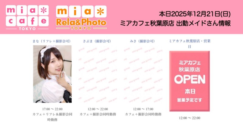 👑本日12月21日(日)のミアカフェ秋葉原店