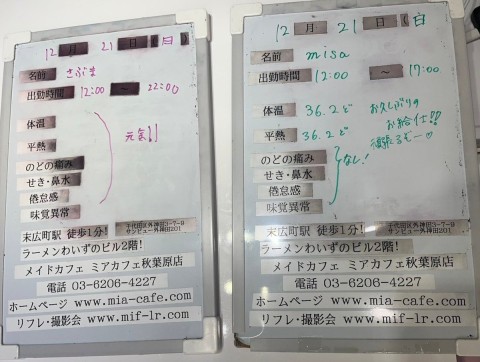 | å¶æ¥æé | âãã¢ã«ãã§æ±äº¬åºïŒã¡ã€ãã«ãã§ïŒhttp://www.mia-cafe.com/ãâ â¡å¹³æ¥ãæïœéãïŒïŒïŒïŒïŒïœïŒïŒïŒïŒïŒ â¡åæã»æ¥æã»ç¥æ¥ãïŒïŒïŒïŒïŒïœïŒïŒïŒïŒïŒ â å®äŒæ¥ããªãïŒ2019幎1æããå®äŒæ¥å»æ¢ïŒ â¡ã©ã¹ããªãŒããŒãéåºã®ïŒïŒåå ãïŒïŒïŒïŒïŒéåºã®å ŽåâïŒïŒïŒïŒïŒã©ã¹ããªãŒããŒ å¶æ¥æ¥ãåºå€ç¶æ³ã«ã€ããŠã¯ãã¡ãã http://pandaland.cutegirl.jp/mif/c_cms_csv/sch_top.php âãã¢ãªã©ïŒãã©ãæ±äº¬åºïŒæ®åœ±äŒïŒãªãã¬ïŒhttp://www.mif-lr.com/ãâ â¡å šæ¥ãïŒïŒïŒïŒïŒãïŒïŒïŒïŒïŒãã§ãããªã©ã¯ãŒãŒã·ã§ã³åºå€ã¹ã¿ãããããæé垯ã®ã¿å¶æ¥ã§ãã â å®äŒæ¥ã¯äžå®äŒïŒåºå€ã¹ã¿ãããããæé垯ã®å¶æ¥ïŒ â¡æçµåä»ãéåºã®ïŒïŒåå ãïŒïŒïŒïŒïŒéåºã®å ŽåâïŒïŒïŒïŒïŒïŒïŒïŒïŒïŒïŒè¿ã«æœè¡æéãçµããã³ãŒã¹ïŒ â»é«æ ¡çäžå¯ âæ·±å€å¶æ¥ã«ã€ããŠã¯ãå ¬åŒãµã€ãå³äžã® http://market.chu.jp/schedule1/sche37.cgi ãã¢ã°ã«ãŒãç·åã¹ã±ãžã¥ãŒã«ïŒïŒ°ïŒ£ã»ã¹ããïŒ http://market.chu.jp/schedule1/sche37.cgi?dm=1 ãã¢ã°ã«ãŒãç·åã¹ã±ãžã¥ãŒã«ïŒã¬ã©æºåž¯ïŒ ãã芧ãã ãããåç¥æ¥ã®ã¿å¶æ¥ãšãªããŸããåç¥æ¥ä»¥å€ã¯æ·±å€å¶æ¥ããããŠãããŸããã æ·±å€å¶æ¥å¯Ÿè±¡æ¥ãïŒïŒïŒïŒïŒãç¿æïŒïŒïŒïŒïŒïŒ¬ïŒïŒ¯ïŒïŒïŒïŒïŒïŒ | ||||||||||||||