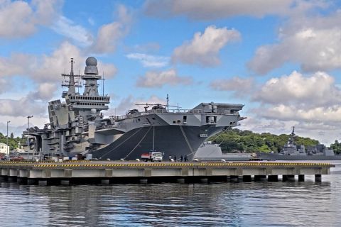 早起きが出来たので、横須賀に寄港しているイタリアの空母を見に行ってきました(^o^)丿